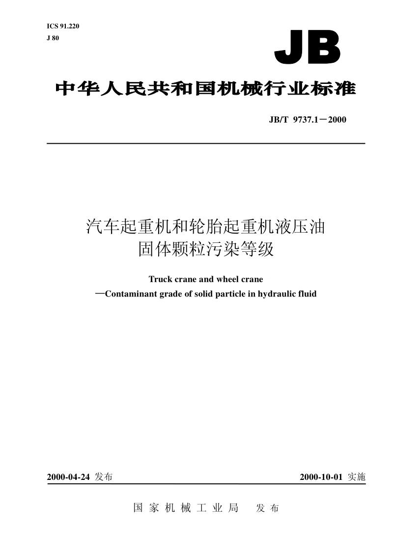 根據(jù)中華人民共和國(guó)機(jī)械行業(yè)標(biāo)準(zhǔn)的《汽車起重機(jī)和輪胎起重機(jī)液壓油固體顆粒污染等級(jí)》規(guī)定: