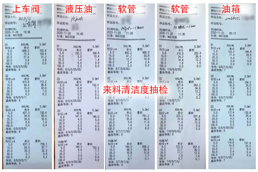 韶起采購(gòu)的液壓元件包括油缸、液壓回轉(zhuǎn)裝置、柱塞泵、液壓閥鎖、鍍鋅鋼管、液壓軟管、液壓油、油箱等均來自國(guó)內(nèi)外知名品牌,并與各供應(yīng)商簽署的技術(shù)協(xié)議要求清潔度等級(jí)達(dá)到ISO4406標(biāo)準(zhǔn)18/15(相當(dāng)于美國(guó)宇航標(biāo)準(zhǔn)NAS1638的8級(jí)),液壓系統(tǒng)清潔度有保障,同時(shí),韶起對(duì)供應(yīng)商的每一批供貨都嚴(yán)格的進(jìn)行清潔度的抽檢,抽檢結(jié)果達(dá)不到準(zhǔn)入標(biāo)準(zhǔn)的則整批退回給供應(yīng)商要求整改,進(jìn)一步從供應(yīng)鏈上確保液壓系統(tǒng)清潔度;
