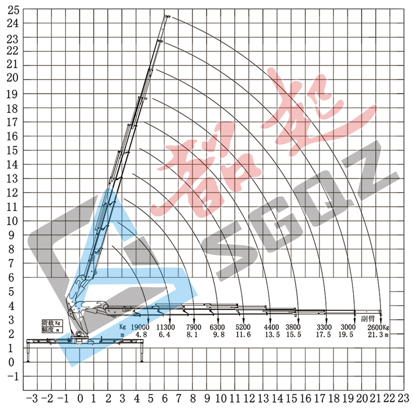 SQ45T伸縮臂與轉(zhuǎn)臂大負(fù)角設(shè)計(jì),吊載更靈活;可配置插銷中置彎頭副臂,插銷位可安裝吊鉤或者滑輪,更適于在低矮狹小的空間吊裝作業(yè)。